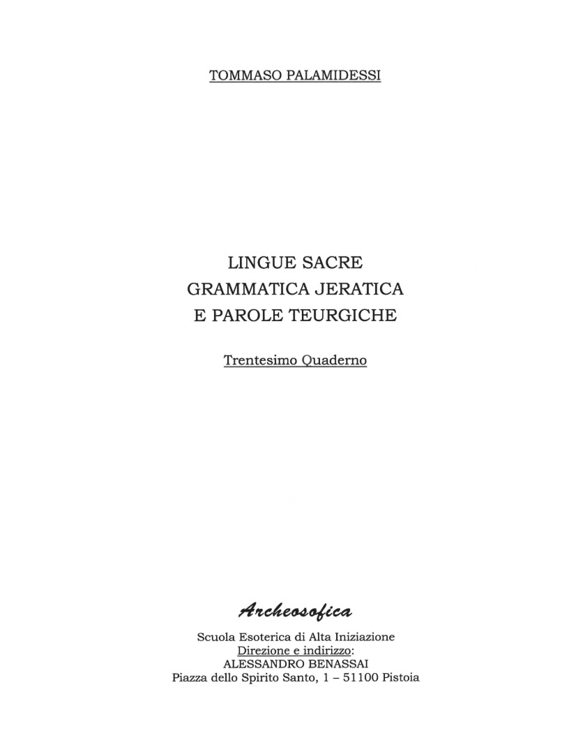 Questo Quaderno introduce allo studio delle lingue sacre, con particolare attenzione all’ebraico biblico e al suo valore nella tradizione spirituale. Tommaso Palamidessi illustra la struttura dell’alfabeto e della fonetica ebraica e il significato teurgico delle lettere e dei nomi divini, mostrando come la meditazione sulle parole sacre possa diventare uno strumento di elevazione interiore e di unione con il divino.