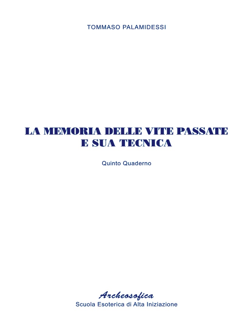 In questo Quaderno Tommaso Palamidessi affronta il tema della reincarnazione e della memoria delle vite precedenti, illustrando il significato spirituale del ricordo delle esperienze passate. Il testo presenta principi e indicazioni per lo sviluppo della memoria profonda dell’anima nel cammino di evoluzione e conoscenza interiore.