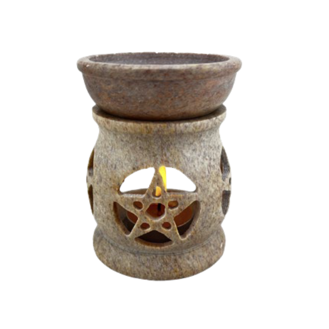 Simbologia: il pentagramma è uno dei simboli esoterici più antichi e potenti, rappresentazione dell’armonia tra i cinque elementi — terra, acqua, fuoco, aria e spirito — e dell’equilibrio tra materia e coscienza. Nelle tradizioni occidentali è considerato un segno di protezione e di ordine cosmico, utilizzato come talismano per delimitare spazi sacri e respingere le energie disarmoniche. Inserito in un oggetto rituale, il pentagramma trasforma la diffusione del profumo in un gesto carico di intenzione e consapevolezza.