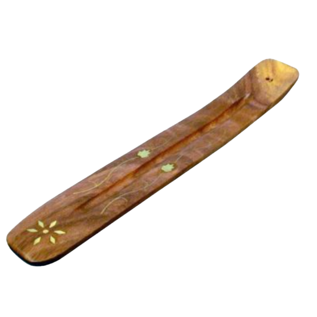 Brucia incenso a barchetta in legno con ottone - 25 cm