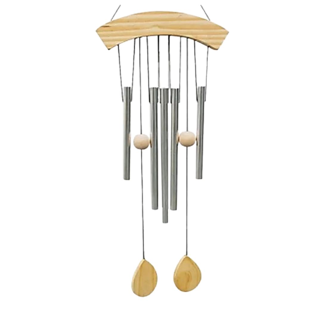 Simbologia e qualità sonore: Il numero cinque richiama l’equilibrio dei cicli naturali e degli elementi, suggerendo armonia e stabilità. Le canne, libere di muoversi con il vento, producono un suono chiaro e gentile, mai invadente, che favorisce rilassamento e ascolto. Il legno naturale, materiale vivo e caldo, radica l’oggetto alla dimensione della terra, mentre il metallo porta chiarezza e risonanza: insieme creano un dialogo equilibrato tra materia e vibrazione. Nelle tradizioni di armonizzazione degli spazi, le campane a vento sono considerate strumenti capaci di muovere l’energia stagnante, favorendo un flusso più leggero e ordinato. Il suono nasce solo quando l’aria lo attraversa, ricordando che l’armonia non si impone ma si lascia accadere.
