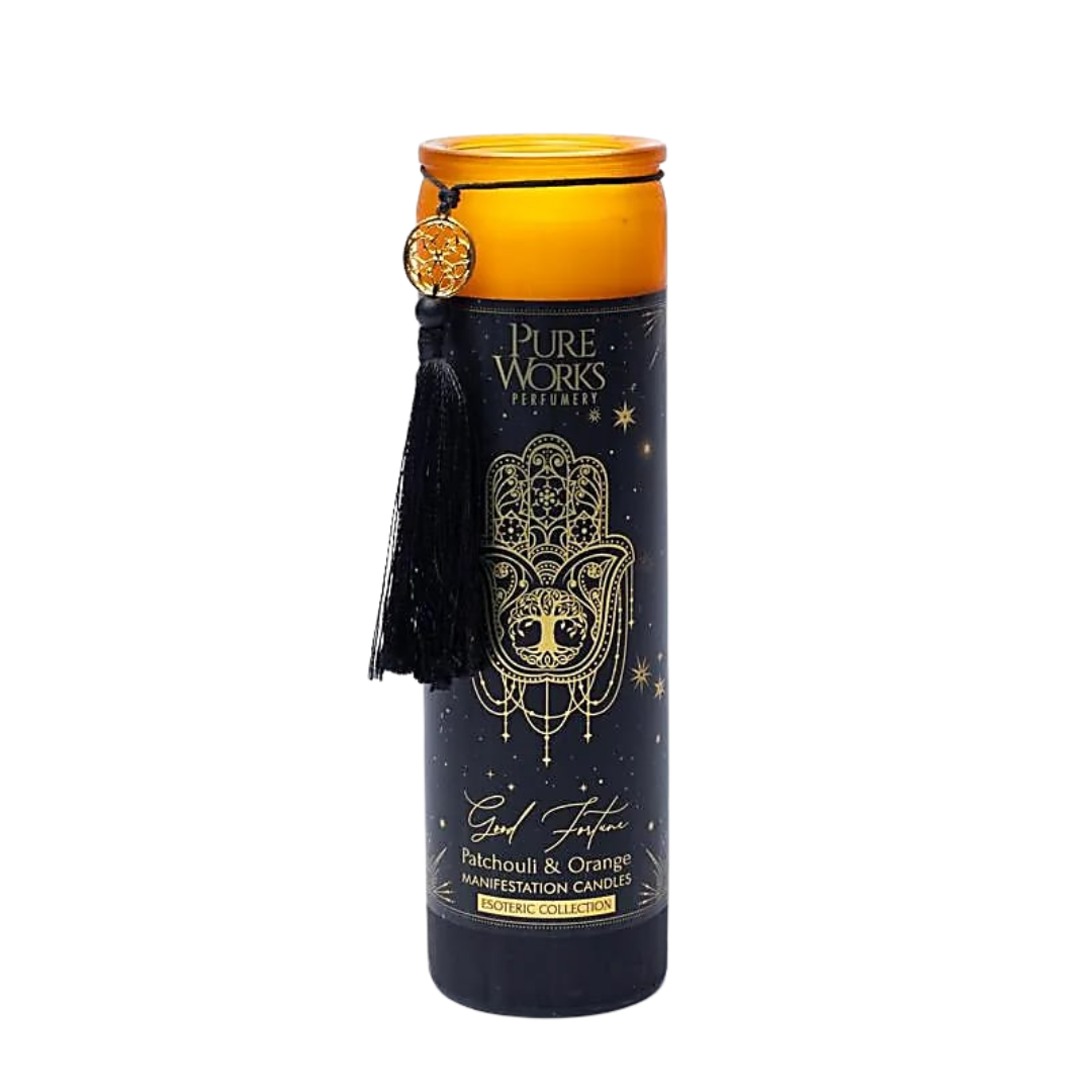 Candela d'intenti pure works con nappina buona fortuna in vetro - 80 h