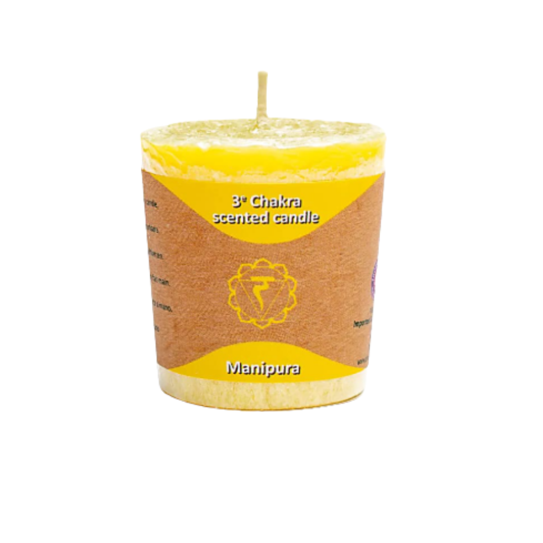 Candela yogi e yogini 3 chakra manipura in stearina 12 h - 4 x 4,5 cm