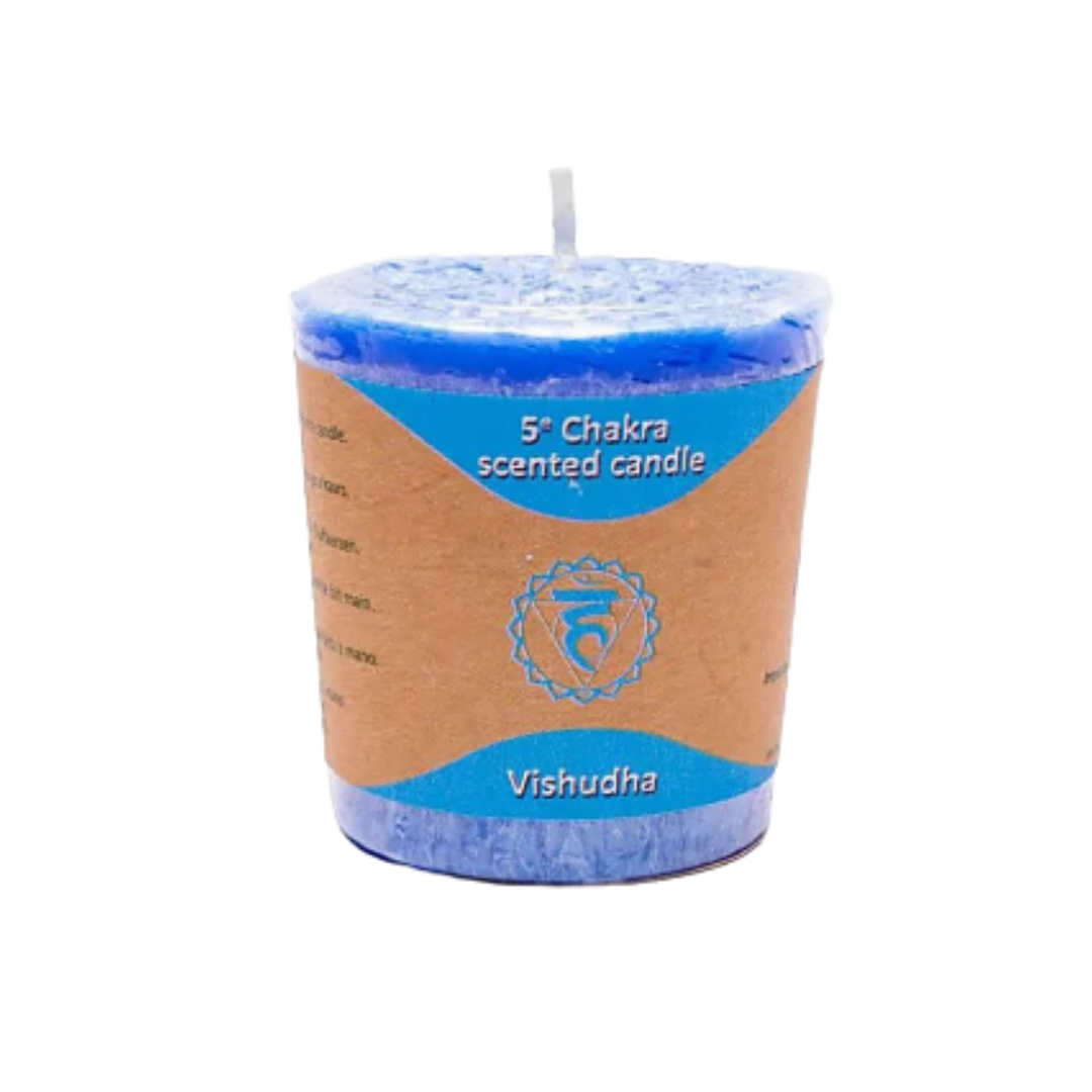 Candela yogi e yogini 5 chakra vishudha in stearina 12 h - 4 x 4,5 cm