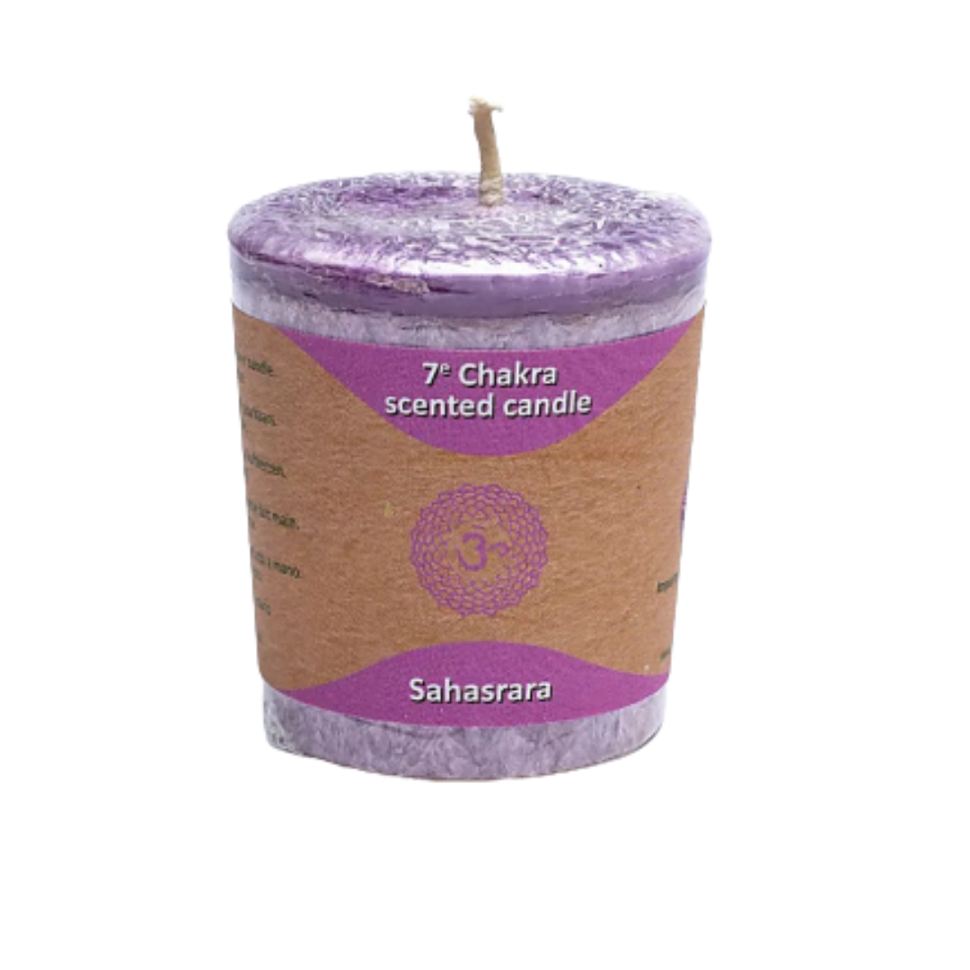 Candela yogi e yogini 7 chakra sahasrara in stearina 12 h - 4 x 4,5 cm