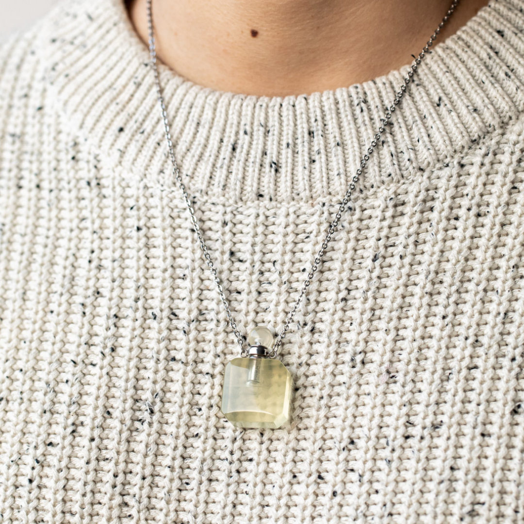 Materiale: pietra naturale di Quarzo Giallo – catena in metallo - pipetta in plastica per olio essenziale