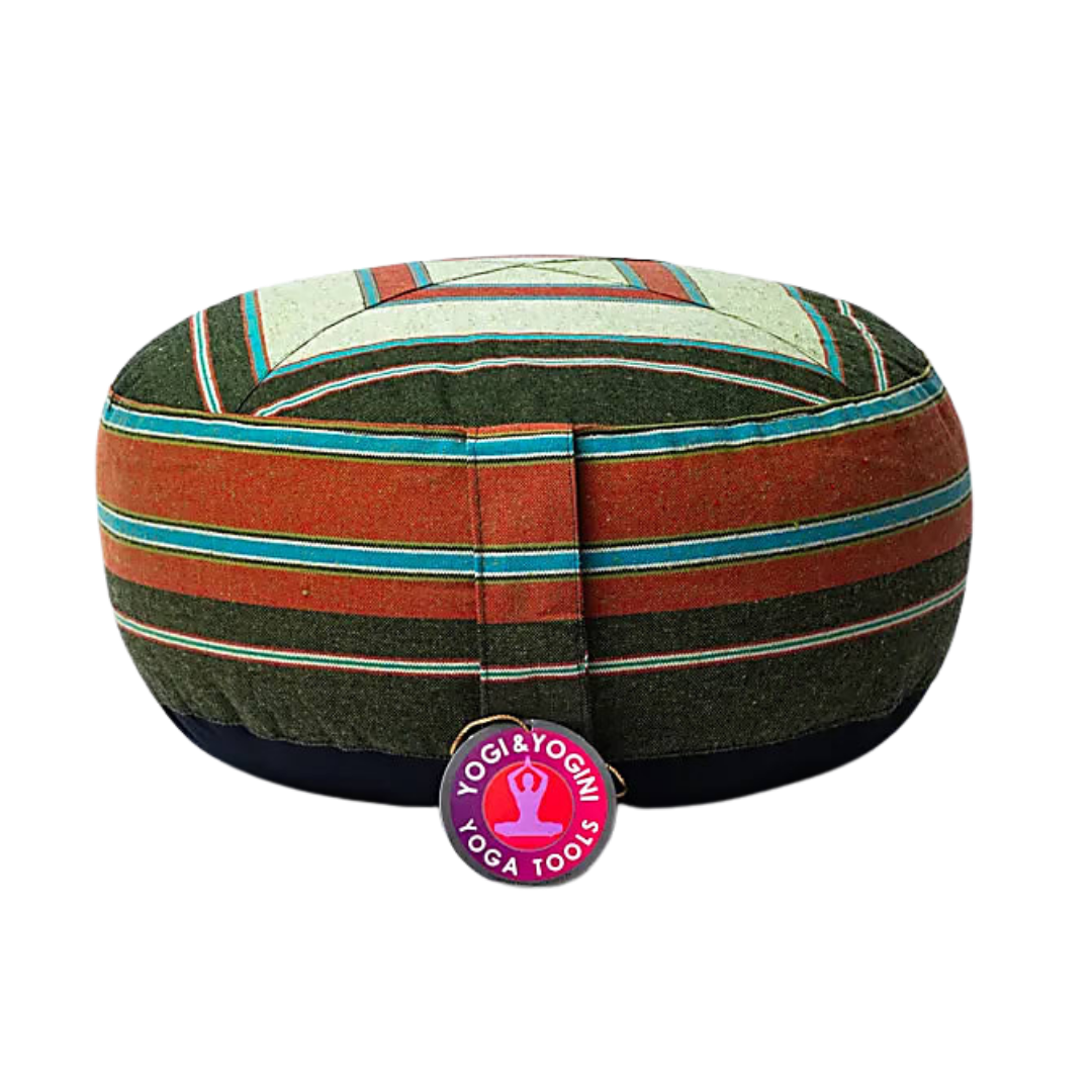 Cuscino da meditazione rotondo con rivestimento in cotone, pensato per sostenere una postura stabile e confortevole durante la pratica meditativa, favorendo concentrazione, centratura e ascolto interiore. I colori rilassanti e il design particolare richiamano la dimensione del rituale quotidiano, creando uno spazio intimo e accogliente per il silenzio e la presenza. Realizzato con cura artigianale e materiali di qualità.