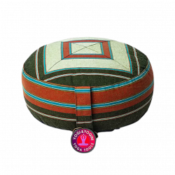 Cuscino zafu verde chiaro e scuro in cotone organico con pula di grano - 33x17cm