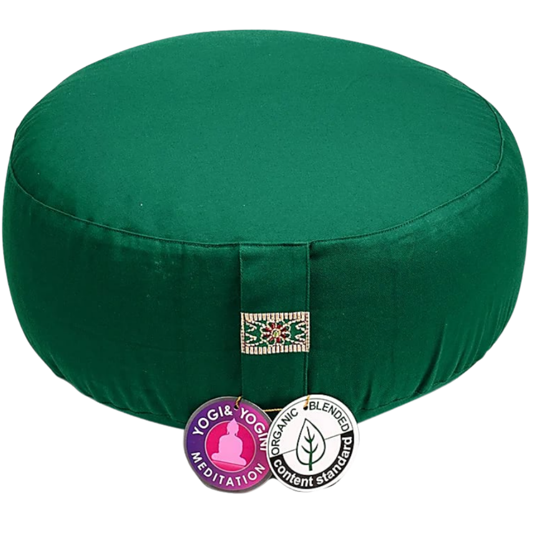 Cuscino zafu verde scuro in cotone organico con pula di grano - 33x17 cm