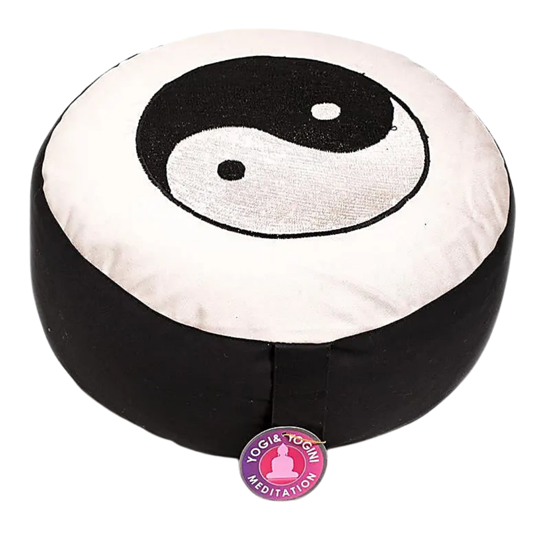 Simbologia: lo Yin-Yang è uno dei simboli fondamentali della filosofia taoista e rappresenta l’equilibrio dinamico tra forze opposte e complementari presenti in ogni aspetto dell’esistenza. Yin e Yang non sono in conflitto, ma in continua trasformazione reciproca, esprimendo il flusso naturale della vita tra quiete e movimento, raccoglimento ed espansione. Associato alla consapevolezza, all’armonia interiore e alla circolazione dell’energia vitale, il simbolo richiama l’importanza di trovare stabilità nel cambiamento e presenza nel ritmo del respiro. La pula di grano saraceno, materiale naturale e vivo, rafforza questo simbolismo di adattamento e bilanciamento, offrendo un sostegno stabile ma flessibile che accompagna il corpo con naturalezza, favorendo una postura equilibrata e una meditazione profonda.