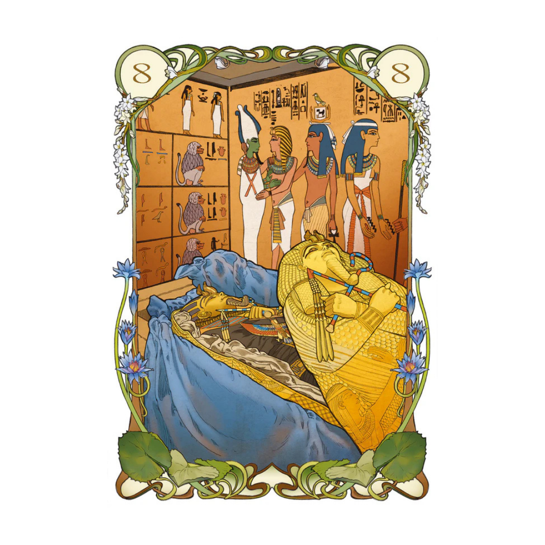 A seguire il recente successo dei Golden Art Nouveau Tarot e degli Egyptian Art Nouveau Tarot, ecco un nuovo mazzo dell'artista Giulia Massaglia. I 36 archetipi della tradizione Lenormand trovano nuova vita in queste inedite illustrazioni, ognuna delle quali rappresenta uno sguardo ai tempi lontani dei faraoni e delle piramidi. Una serie di cornici in stile Art Nouveau incastona elegantemente ogni opera sulla carta.