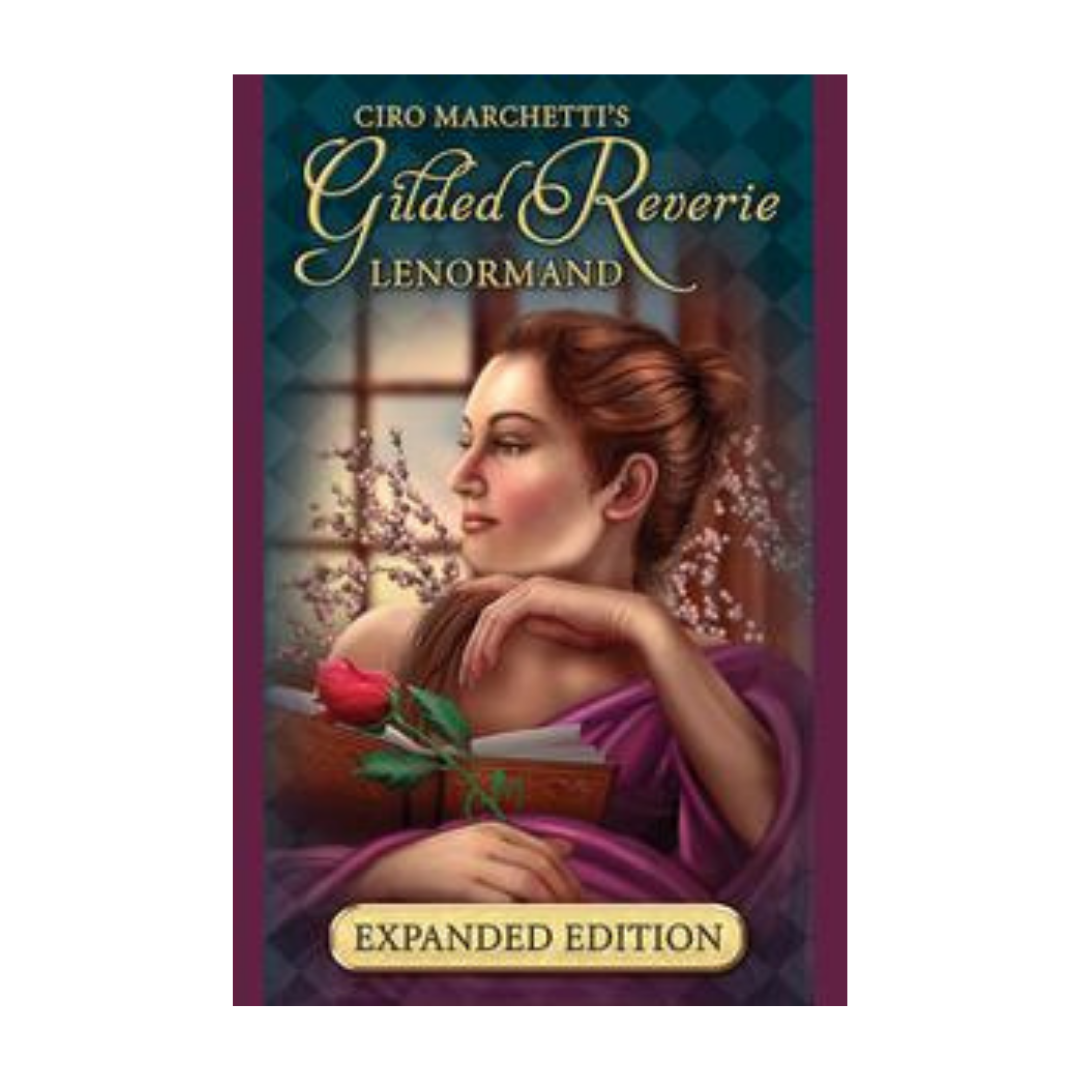 Gilded Reverie Lenormand mette in mostra il talento digitale di Ciro Marchetti con immagini accattivanti su 47 carte con bordi dorati, racchiuse in una scatola con cerniera magnetica e dettagli in lamina d'oro. Questo mazzo in edizione ampliata include otto carte supplementari speciali, di cui quattro inedite. Le carte extra sono: Tempo, Ponti, Dadi, Maschera, Pozzo, Bussola, Labirinto e Lente d'ingrandimento. Per questo mazzo, Ciro fornisce anche una carta extra Uomo, Dama e Gufo per migliorare le letture di Lenormand. La guida di 80 pagine offre istruzioni esperte da Lee Bursten, Donnaleigh de LaRose e altri per la lettura di questo mazzo ampliato.