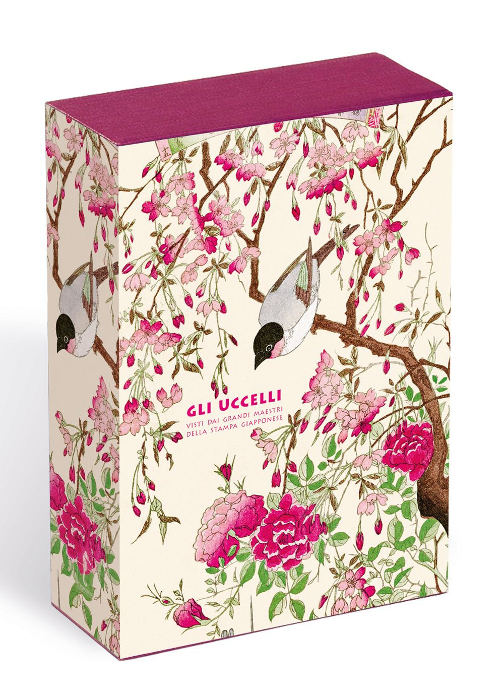 Questo cofanetto celebra il variegato mondo degli uccelli attraverso le opere dei più grandi maestri della stampa giapponese. Contiene un libretto sulla storia dello stile kachō-ga («immagini di fiori e di uccelli») e un elegante leporello con oltre 60 riproduzioni volte a celebrare in ogni dettaglio la bellezza della natura. Delicate cince su ciliegi in fiore, maestosi pavoni che fanno la ruota, cacatua dai colori cangianti e civette dormienti sotto la luna piena rivelano tutta la poesia di artisti intramontabili quali Keisai, Keibun, Hiroshige e Koson. Questo cofanetto celebra il variegato mondo degli uccelli attraverso le opere dei più grandi maestri della stampa giapponese. Contiene un libretto sulla storia dello stile kachō-ga («immagini di fiori e di uccelli») e un elegante leporello con oltre 60 riproduzioni volte a celebrare in ogni dettaglio la bellezza della natura. Delicate cince su ciliegi in fiore, maestosi pavoni che fanno la ruota, cacatua dai colori cangianti e civette dormienti sotto la luna piena rivelano tutta la poesia di artisti intramontabili quali Keisai, Keibun, Hiroshige e Koson.