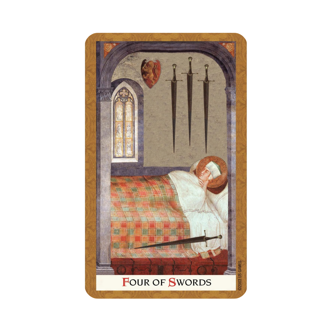 Composto da collage di immagini tratte dai dipinti dei maestri europei, il Golden Tarot è una splendida aggiunta a qualsiasi collezione di tarocchi. Le carte sono splendidamente trattate con bordi dorati e il mazzo è confezionato in una lussuosa scatola espositiva. Pur rendendo omaggio alle opere d'arte del Medioevo e del primo Rinascimento, il mazzo celebra l'esplorazione dei tarocchi e del loro patrimonio artistico. L'interpretazione di Kat Black è al tempo stesso accogliente e moderna, pur rimanendo fedele alle tradizioni originali di Rider-Waite.
