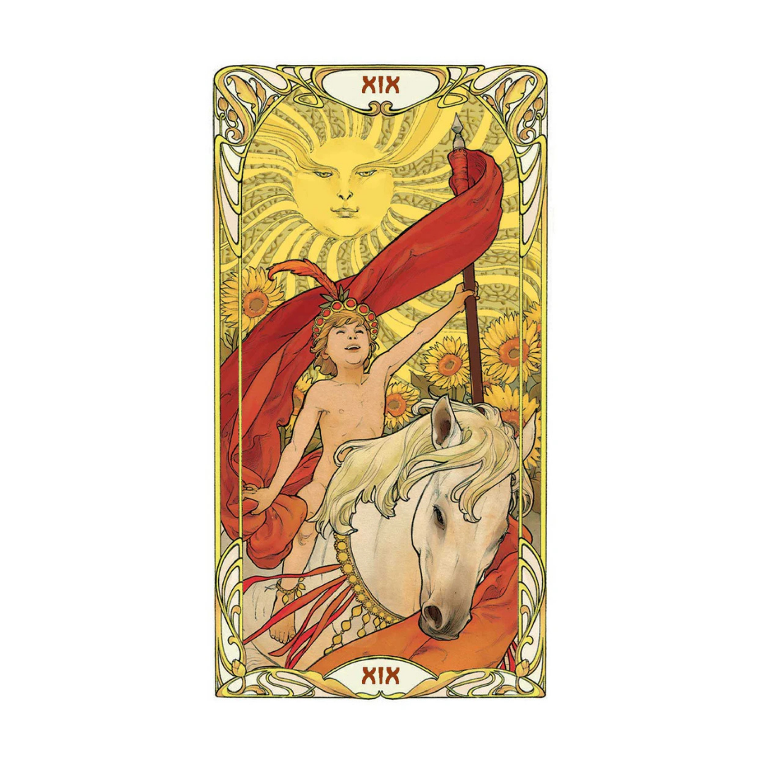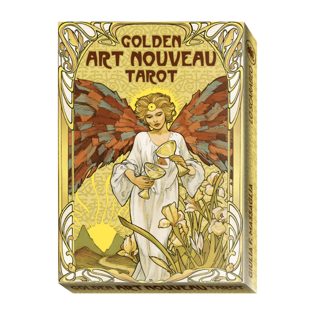 I 22 Arcani Maggiori del bestseller Golden Art Nouveau Tarot, ora raccolti in un formato oversize che mostra perfettamente la gloriosa e stupefacente bellezza delle opere in stile Art Nouveau di Giulia Massaglia, impreziosite da impressioni in lamina d'oro.