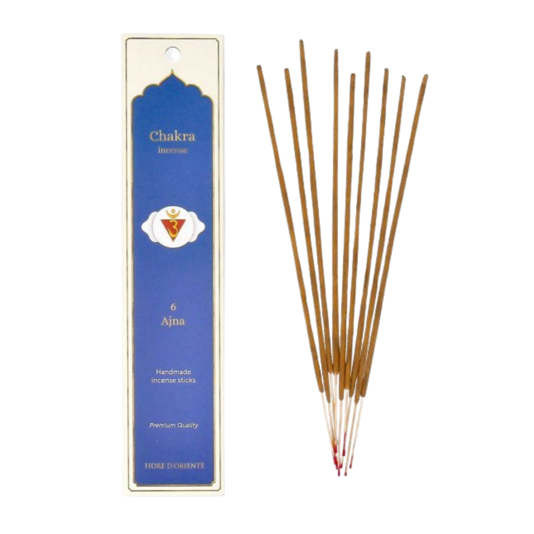 L’incenso Fiore d’Oriente Ajna è una fragranza fresca e profonda, pensata per stimolare l’intuizione e la visione interiore.