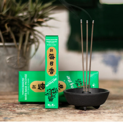 Particolarità: bastoncini realizzati interamente con polveri e resine naturali, senza supporto in bambù, come da tradizione giapponese . Questa caratteristica permette una combustione più pulita, con meno fumo e un aroma più delicato rispetto agli incensi tradizionali indiani o tibetani.