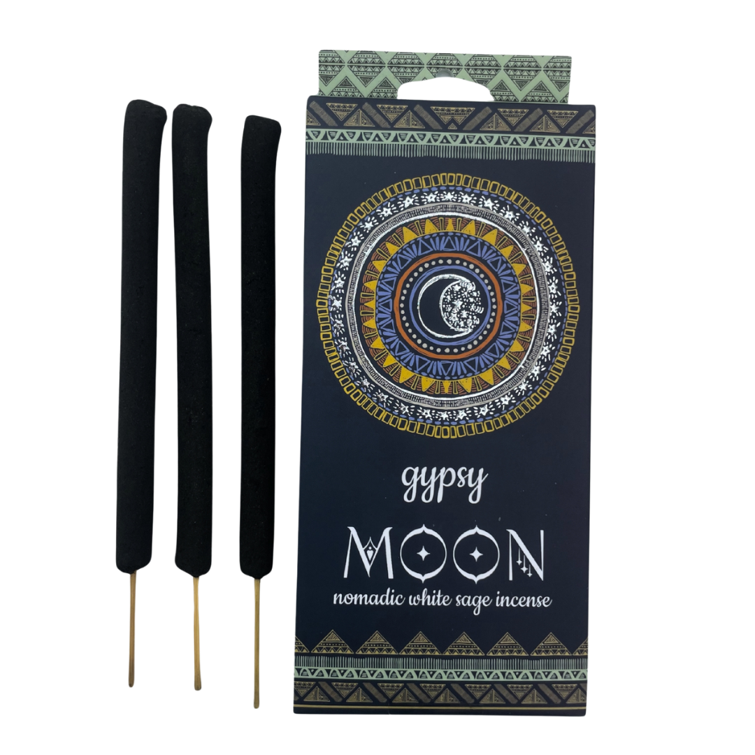 L’Incenso Gypsy Moon Salvia Bianca evoca il potere femminile e la notte rituale, con una fragranza purificante e luminosa. Realizzato con cura artigianale e ingredienti naturali.