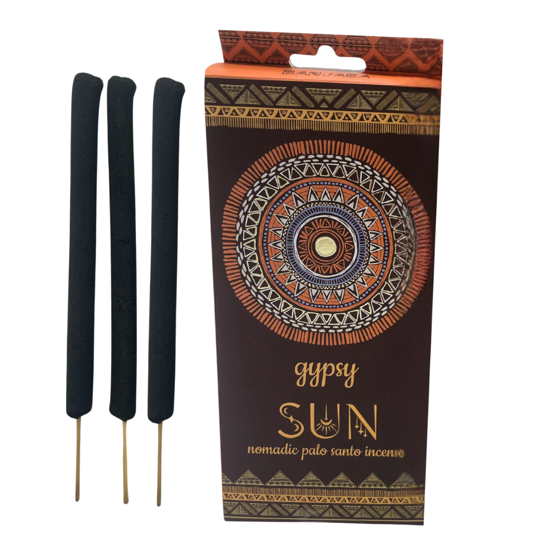 L'aroma del palo santo, protagonista dell'incenso Gypsy Sun, è accompagnata da note dolci e radiose che evocano terre lontane, danze gitane sotto il sole e il canto di spiriti liberi. Ogni bastoncino è una scia di luce che benedice e protegge; stimola l’ottimismo, rafforza l’intuizione e dissolve le ombre interiori con leggerezza. Dal profumo delicato ma presente, è un compagno discreto per meditazioni leggere, pratiche energetiche e momenti di gratitudine.