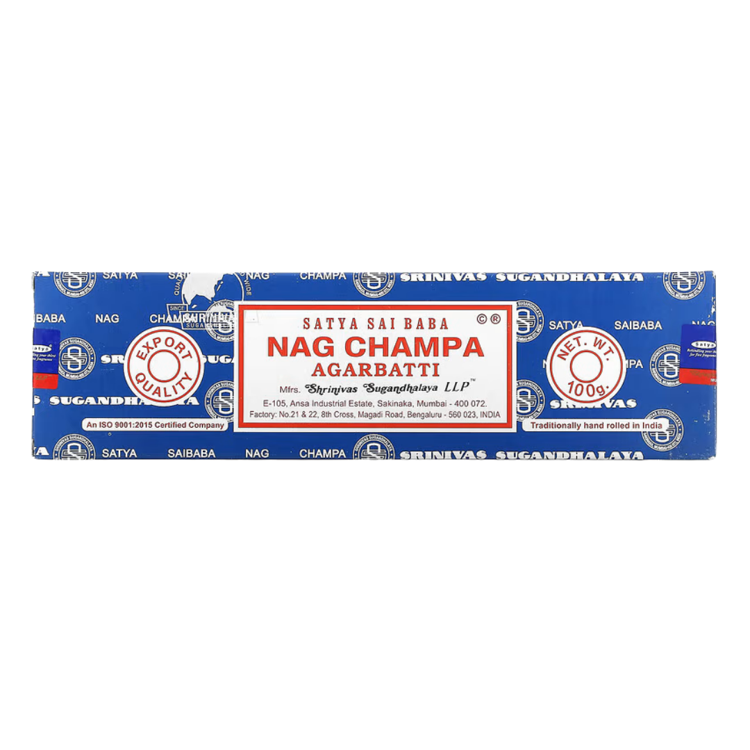 L'incenso Nag Champa è un pilastro della tradizione devozionale indiana, spesso associato alle pratiche spirituali e alla figura del maestro Sathya Sai Baba, da cui prende il nome. Questi bastoncini d'incenso sono stati a lungo usati negli ashram, nei templi e negli spazi di meditazione per facilitare l’introspezione e l’elevazione spirituale. Il loro profumo distintivo, ottenuto dalla combinazione di sandalo e halmaddi, crea un’atmosfera calma, protetta e meditativa. Si tratta di una miscela unica che sprigiona un’energia morbida e avvolgente, che placa i pensieri e invita all’introspezione, favorendo la preghiera, la concentrazione e la connessione con il sé superiore.