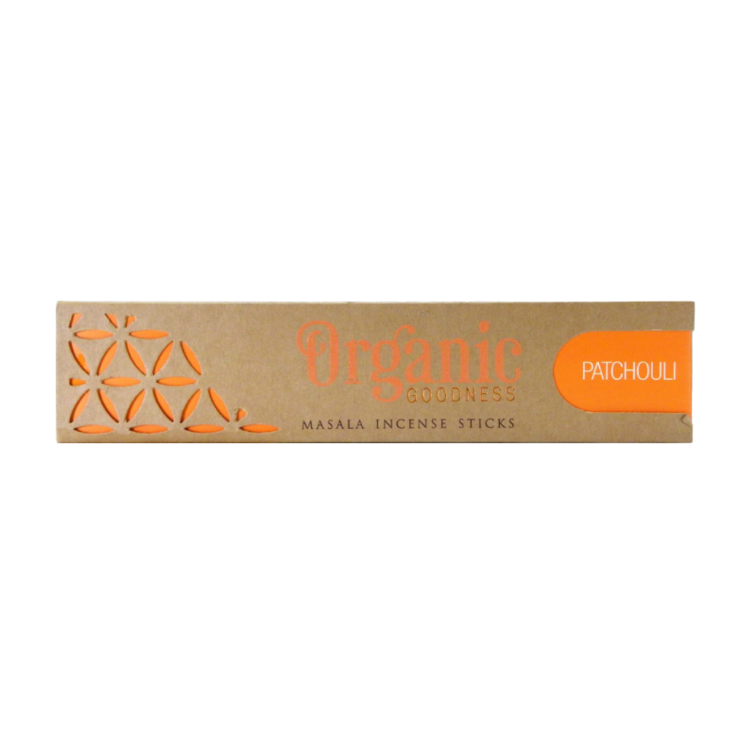 L’incenso Organic Goodness Patchouli sprigiona una fragranza calda e muschiata, simbolo di radicamento e sensualità. Prodotto artigianalmente con ingredienti biologici certificati.