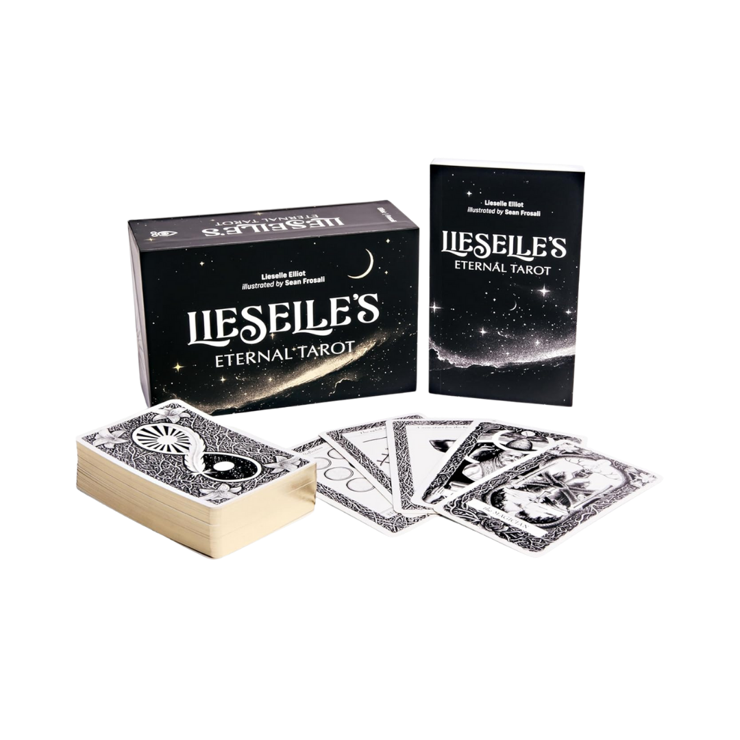 I Tarocchi Eterni di Lieselle si basano sulla tradizione Rider-Waite-Smith, con Arcani Maggiori riccamente illustrati e Arcani Minori in stile pip resi con chiarezza e intenzione. Ogni Arcano Minore è abbinato a un breve mantra, offrendo un punto di attenzione silenzioso senza istruzioni esplicite, mentre nuovi simboli si intrecciano sottilmente nella struttura familiare. La guida allegata esplora l'interpretazione, il simbolismo e la numerologia in un modo che favorisce la riflessione piuttosto che lo spettacolo.