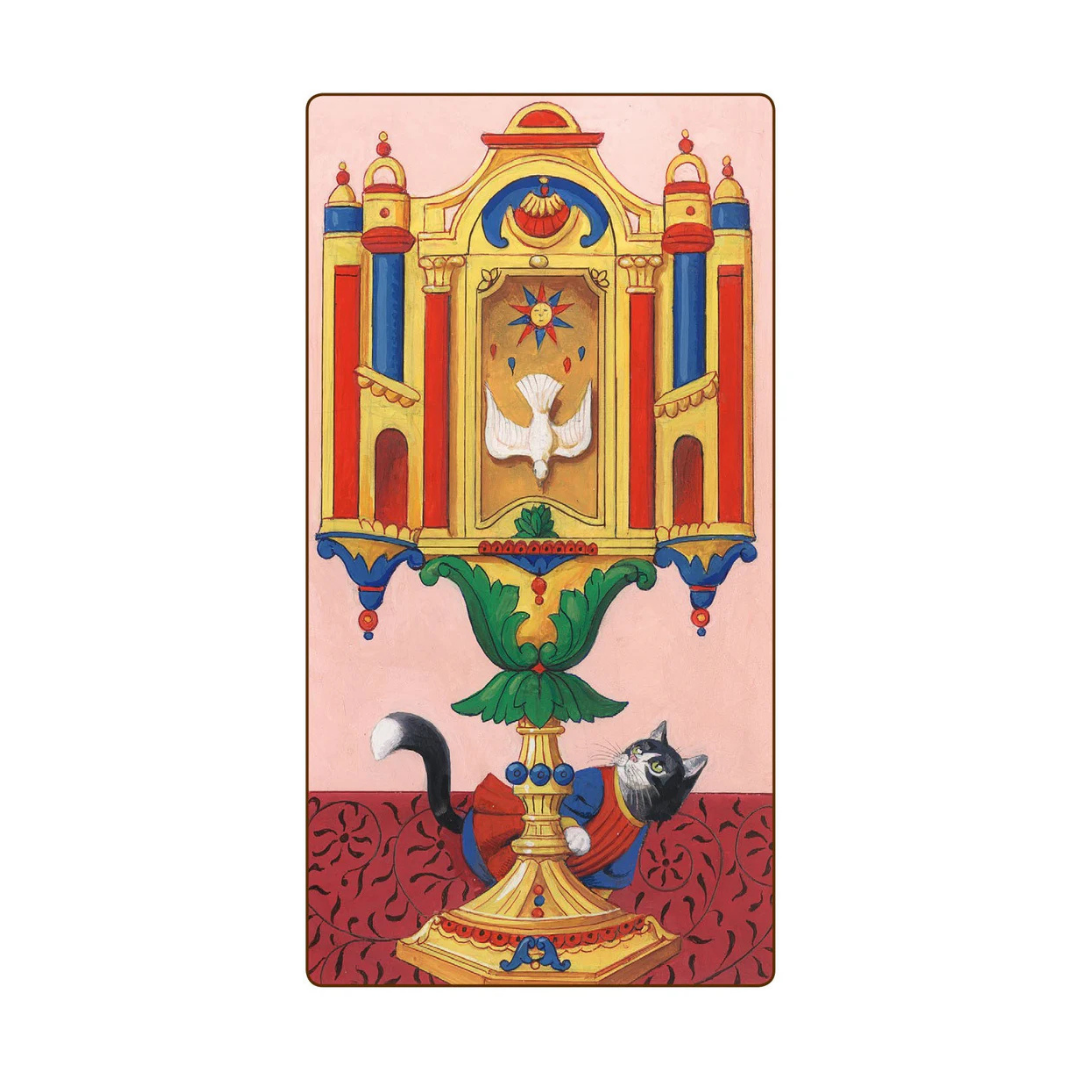 Un allegro e fantasioso tributo ai tarocchi marsigliesi, rappresentati sotto le spoglie di divertenti felini, ma senza rinunciare al dettaglio delle carte tradizionali.