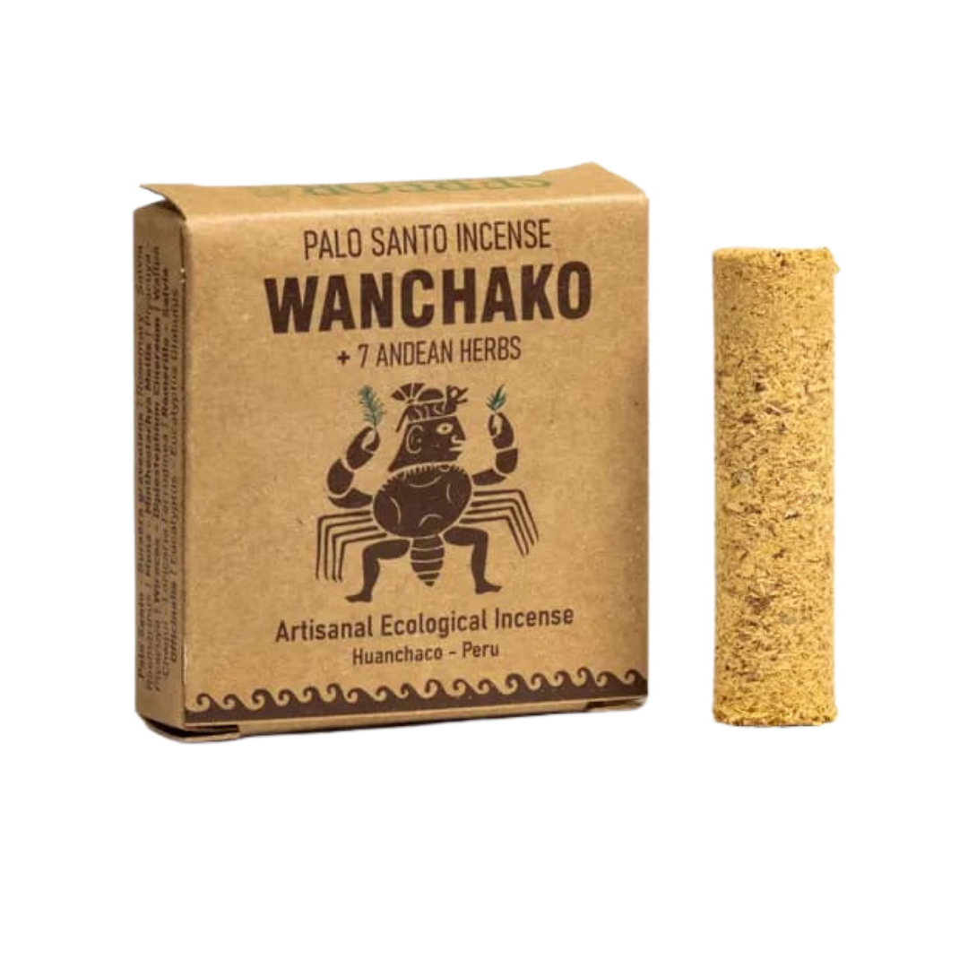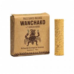 Il Mattoncino di Incenso Wanchako combina legno puro di palo santo (Bursera graveolens) con una selezione di sette erbe tradizionalmente utilizzate nei rituali di purificazione.
