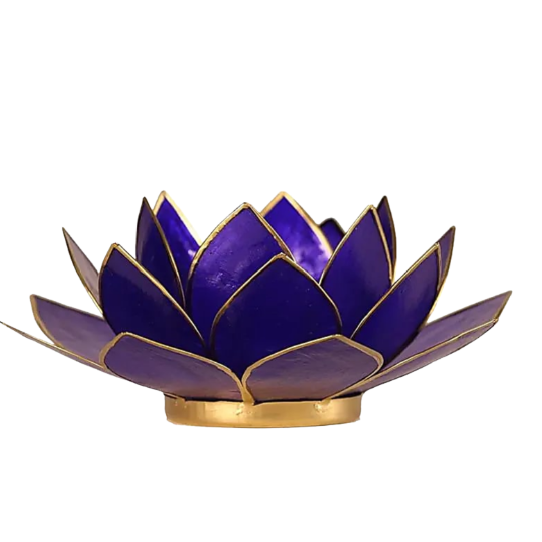 Porta candela fiore di loto 6 chakra indaco bordo oro - 13,5 cm