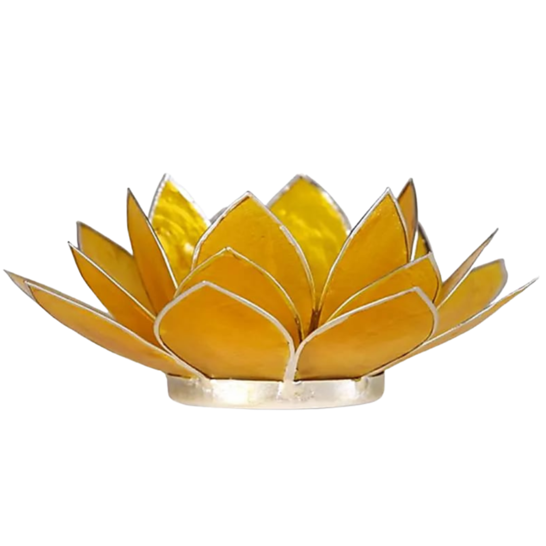 Porta candela fiore di loto 3 chakra giallo bordo argento - 13,5 cm