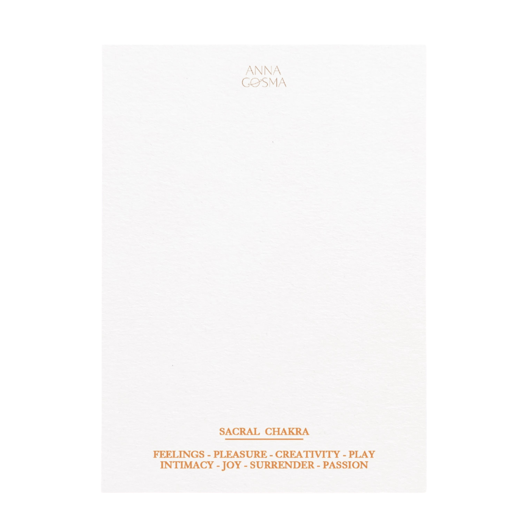 Cartolina ispirazionale dedicata al secondo chakra, stampata su carta di alta qualità dai colori tenui e armoniosi. Ideale per accompagnare momenti di creatività, ascolto delle emozioni e riconnessione con il piacere di vivere, grazie al messaggio motivazionale e alle tonalità calde e avvolgenti. Realizzato con cura artigianale e materiali di qualità.
