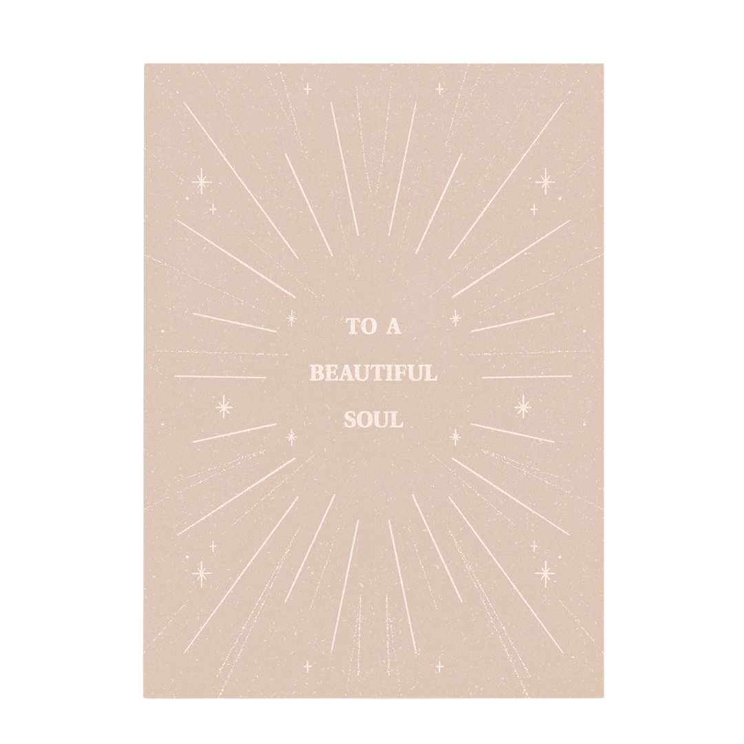 Questa postcard, con il messaggio “To a beautiful soul”, è un invito gentile a riconoscere e celebrare la bellezza autentica che risiede nell’essenza di ogni persona, trasmettendo calore, gratitudine e sincero apprezzamento.