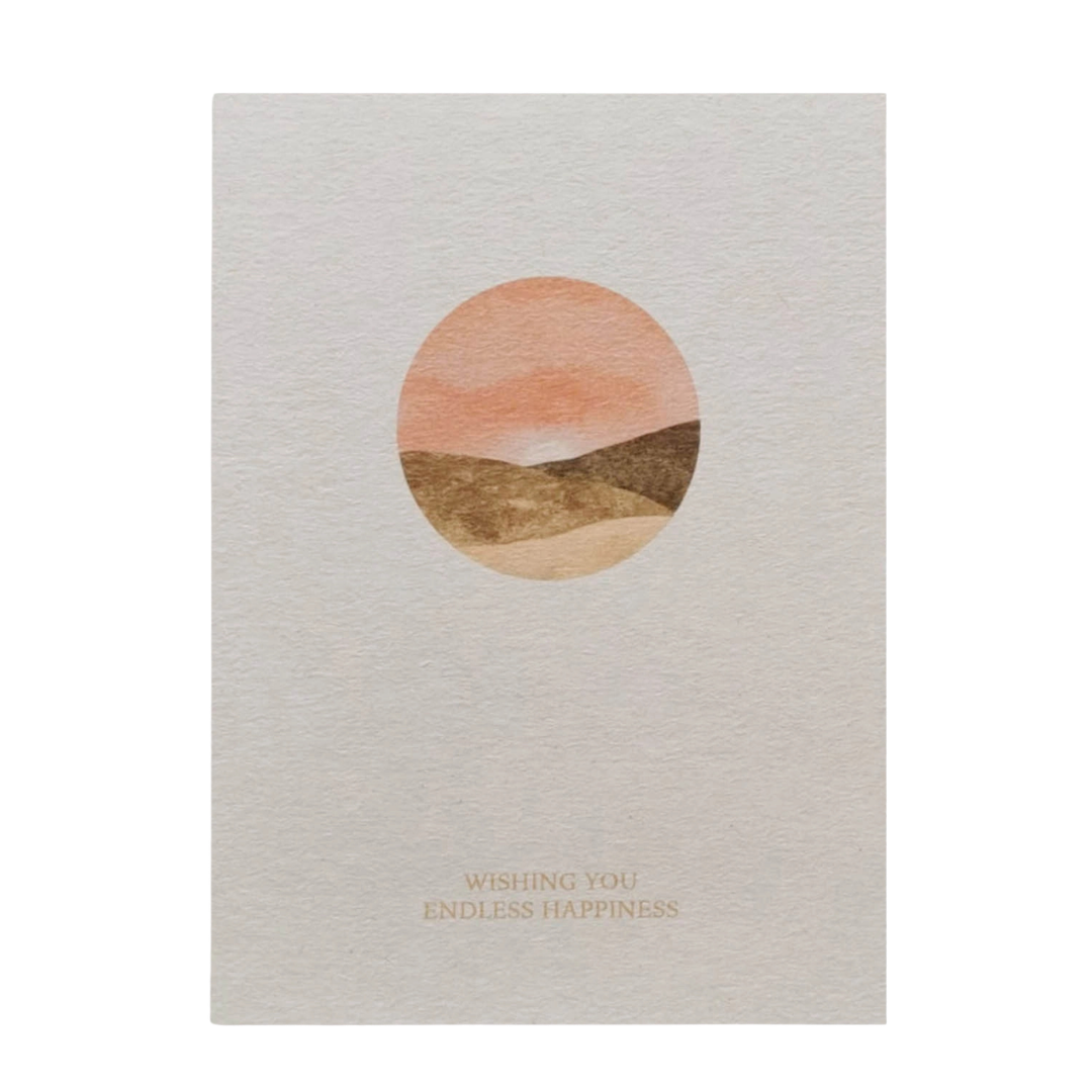 Questa postcard, con il messaggio “Wishing you endless happiness”, è un augurio gentile e profondo, che richiama una felicità calma e duratura, capace di accompagnare il cammino con serenità e gratitudine.
