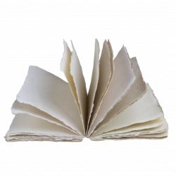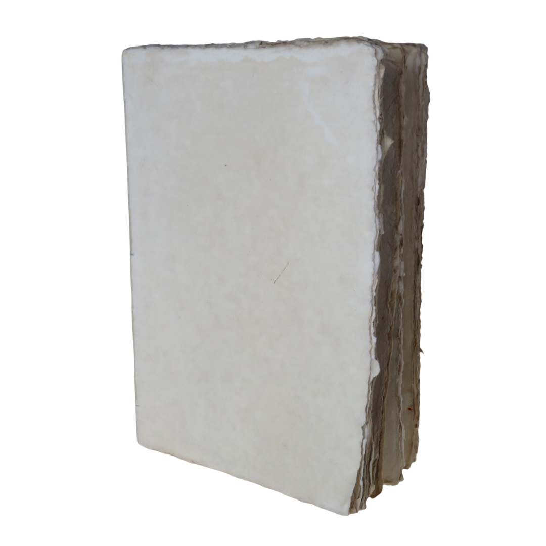 Quaderno bianco in carta pergamena naturale con pagine dai bordi irregolari e aspetto volutamente anticizzato in stile antico libro.