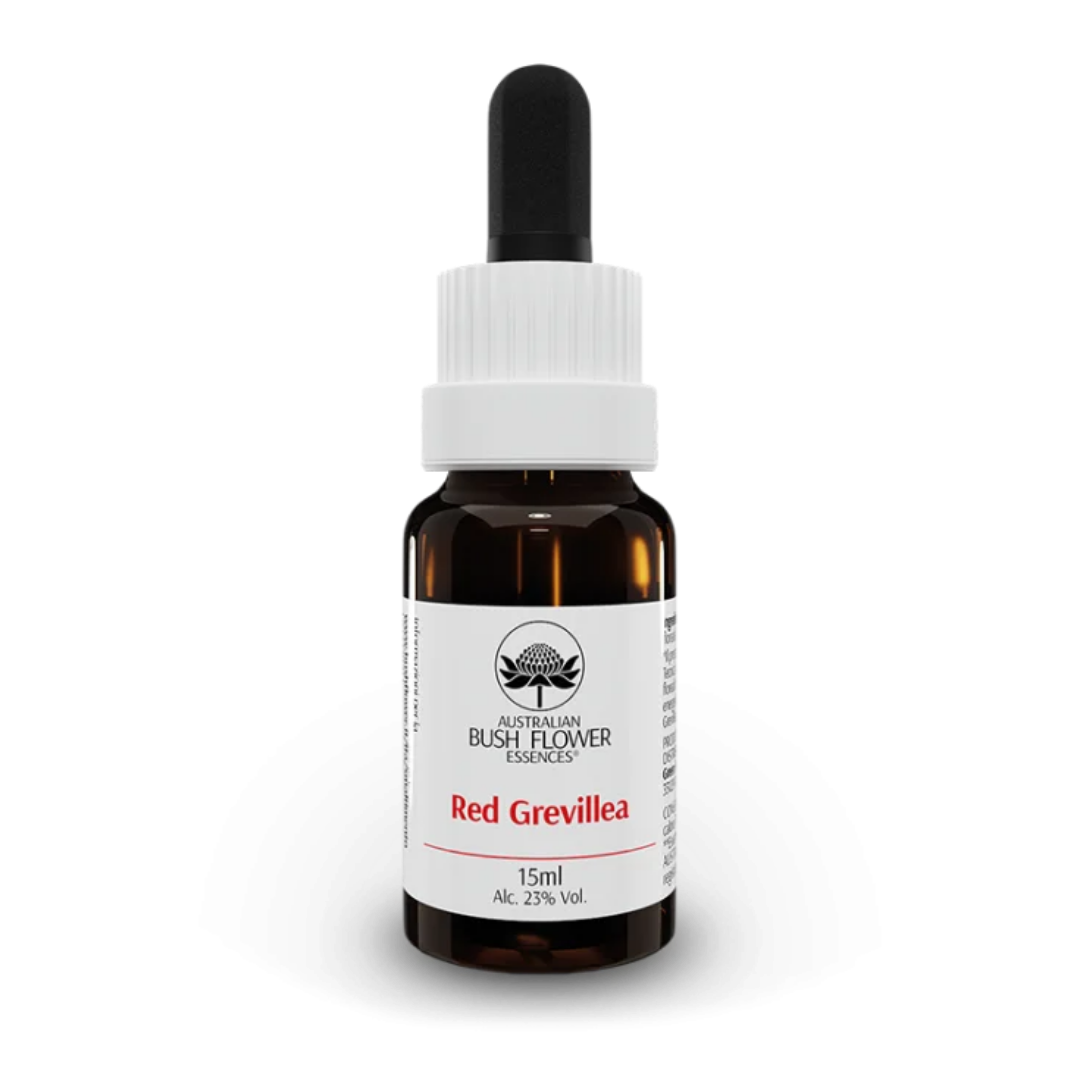 Essenza floreale australiana Red Grevillea in flacone da 15 ml, da assumere per via orale, formulata secondo il metodo originale dei Bush Flower Essences.