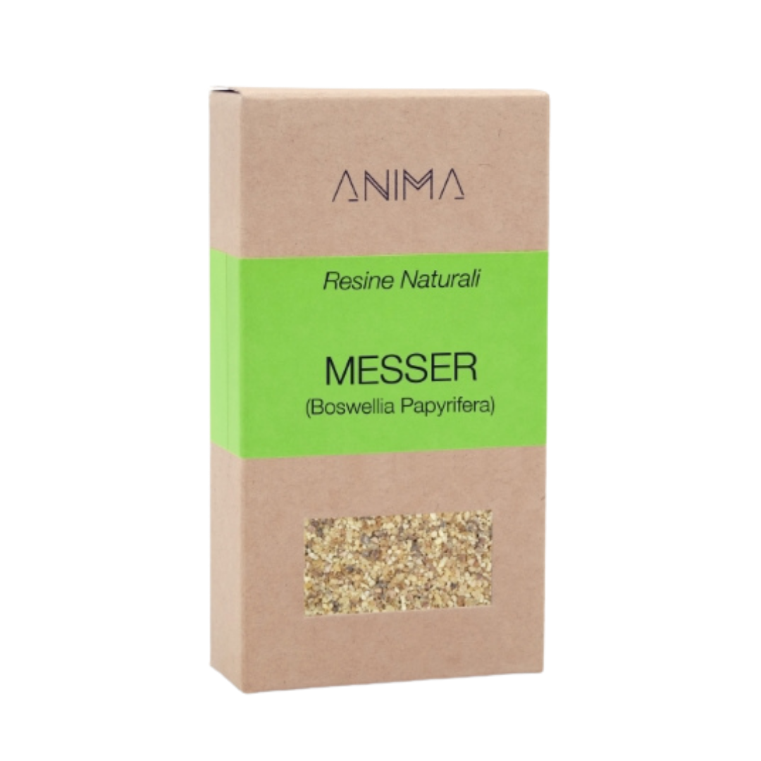 Il Messer è una qualità di incenso derivata dalla Boswellia papyrifera, albero che cresce nelle regioni aride del Corno d’Africa, tra Etiopia, Eritrea e Sudan. Questa varietà di olibano è conosciuta per il suo profumo intenso e leggermente speziato, capace di riempire lo spazio con una fragranza profonda e persistente. Fin dall’antichità le resine di Boswellia sono state utilizzate nei templi del Medio Oriente, nelle liturgie mediterranee e nelle pratiche contemplative come sostegno alla preghiera, alla medita...