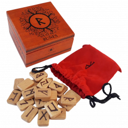 Nella confezione: incluso pregiato cofanetto decorato + sacchetto di velluto rosso per conservare le rune + libretto esplicativo
