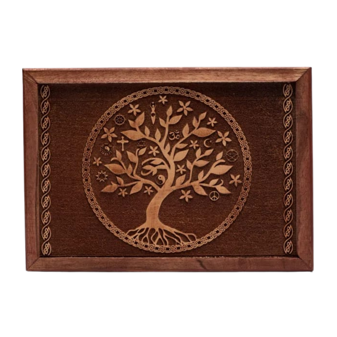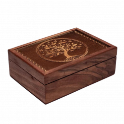 Cofanetto in legno naturale, decorato con il simbolo inciso dell’Albero della Vita. Ideale per custodire mazzi di tarocchi, oracoli o oggetti rituali, protegge e conserva strumenti divinatori mantenendone l’energia raccolta e ordinata. Realizzato con cura artigianale e materiali di qualità.