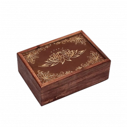 Cofanetto in legno naturale, decorato con il simbolo inciso del Fiore di loto. Ideale per custodire mazzi di tarocchi, oracoli o oggetti rituali, protegge e conserva strumenti divinatori mantenendone l’energia raccolta e ordinata. Realizzato con cura artigianale e materiali di qualità.