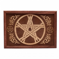 Simbologia: il Pentacolo è uno dei simboli più antichi e centrali della tradizione esoterica occidentale, presente già nelle culture mesopotamiche e successivamente sviluppato nei percorsi ermetici, neopagani e wiccan. Composto dal pentagramma inscritto nel cerchio, rappresenta l’armonia e l’equilibrio dei cinque elementi fondamentali – terra, acqua, aria, fuoco e spirito – uniti in un ordine cosmico coerente. In ambito esoterico è considerato un potente sigillo di protezione, radicamento e stabilità energetica, capace di contenere e orientare l’intento rituale. Il cerchio che racchiude la stella agisce come confine sacro, preservando l’integrità dello spazio e delle energie coinvolte. Applicato o inciso su una scatola rituale, il Pentacolo favorisce la custodia ordinata e protetta degli strumenti divinatori, mantenendone l’energia equilibrata e coerente nel tempo.