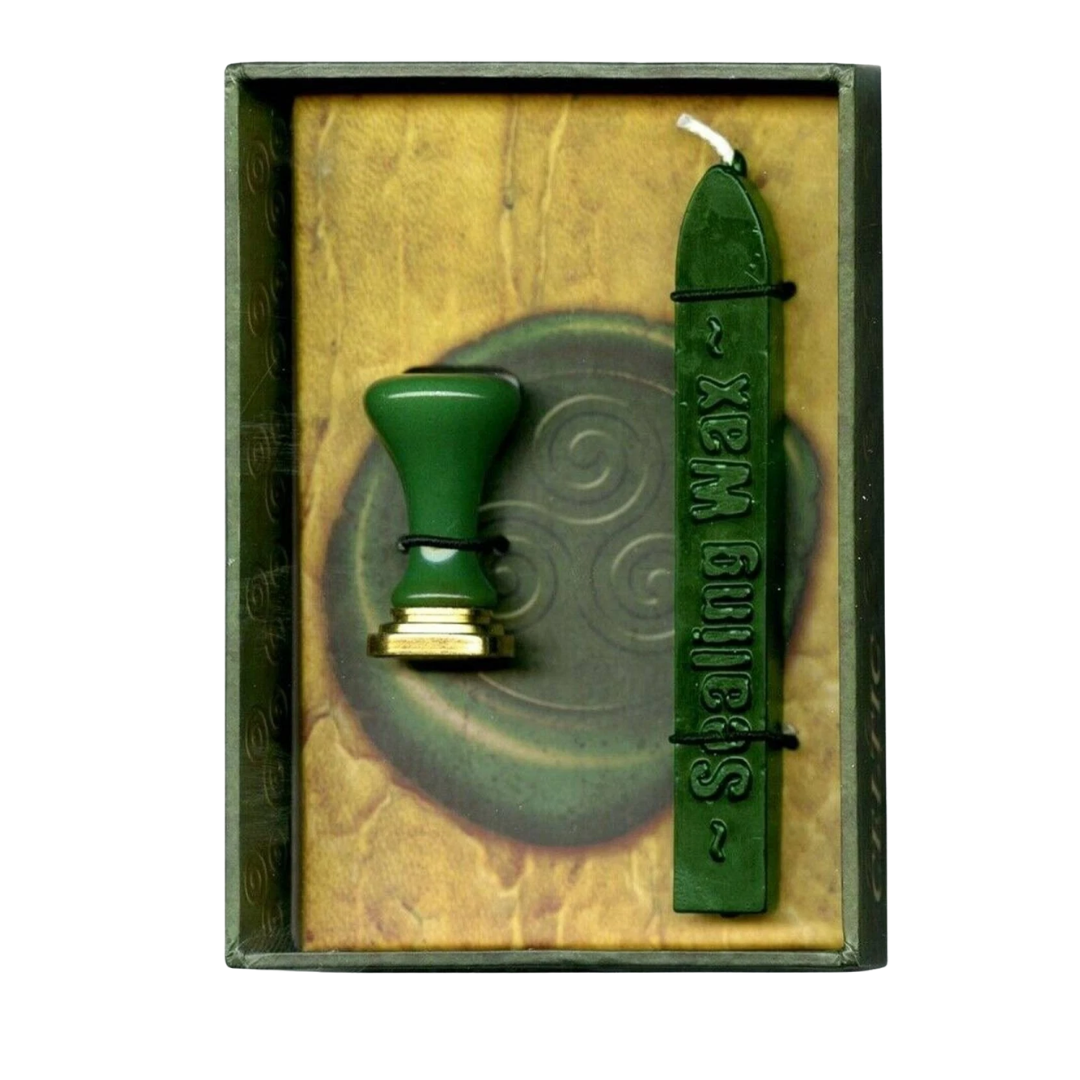 Set composto da timbro per ceralacca con simbolo celtico del Triskele e stick di cera verde coordinato, pensato per creare sigilli decorativi e simbolici su lettere, pergamene e creazioni artigianali. Il motivo ancestrale e il colore naturale trasformano la sigillatura in un gesto rituale che unisce tradizione, energia e significato. Realizzato con cura e materiali di qualità.