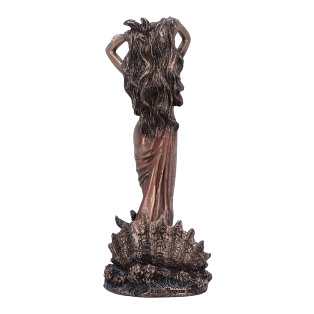 Statua decorativa raffigurante Afrodite, dea dell’amore e della bellezza, realizzata in resina di alta qualità con raffinata finitura color bronzo. Figura elegante e simbolica, incarna il principio dell’attrazione, dell’armonia e della forza generativa, ideale per altari, spazi rituali o ambienti dedicati alla dimensione affettiva e creativa. Realizzato con cura artigianale e materiali di qualità.