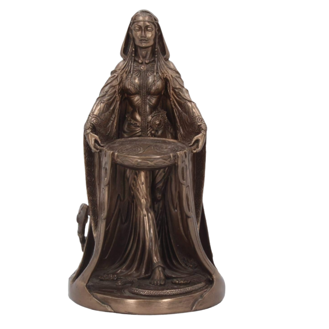 Questa statua di Danu è perfetta per altari rituali, ambientazioni esoteriche, spazi dedicati alla Dea Madre e alla spiritualità della natura; ideale per chi desidera portare nei propri spazi un simbolo profondo di origine, protezione e abbondanza vitale.