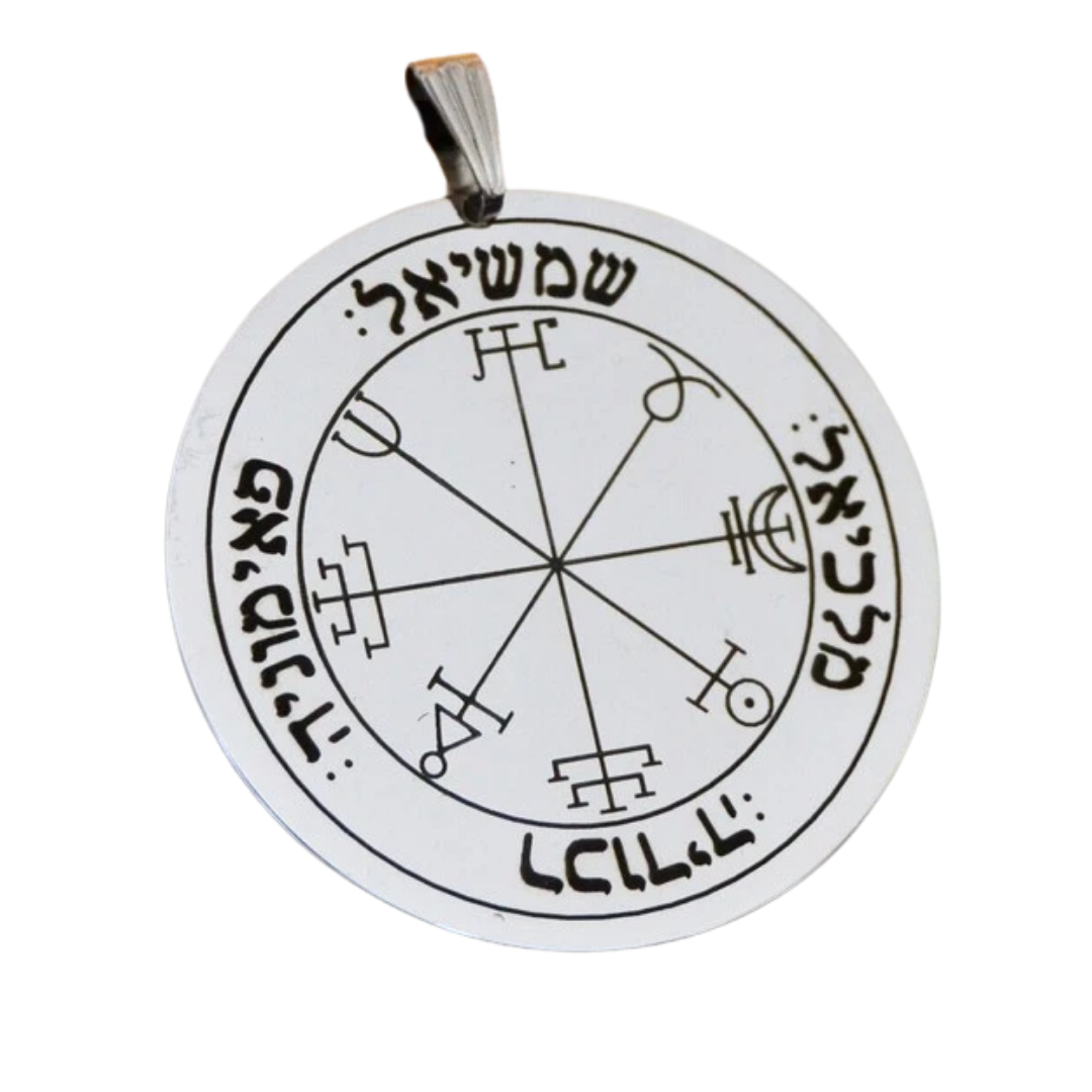 Simbologia: Il Secondo Pentacolo del Sole è descritto nella Clavicula Salomonis come un sigillo associato alla gloria, all’onore e alla protezione concessa dalle forze solari, utilizzato tradizionalmente per ottenere favore, rispetto e riconoscimento nelle proprie azioni. Collegato alla sfera del Sole, pianeta della coscienza, dell’autorità e della vitalità spirituale, questo pentacolo incarna la luce interiore che illumina il cammino e rende manifeste le qualità più nobili dell’individuo. Nella tradizione esoterica il Sole rappresenta il centro dell’essere, il principio della volontà illuminata che guida con chiarezza, dignità e sicurezza, favorendo il successo quando l’azione è allineata con uno scopo superiore. La forma circolare del talismano richiama il disco solare e la perfezione dell’ordine cosmico, simbolo dell’unità e della manifestazione della luce divina nel mondo materiale. Le iscrizioni e i segni interni derivano da formule cabalistiche e invocazioni sacre concepite per attrarre l’influenza benefica della sfera solare, rafforzando carisma, fiducia e capacità di guidare con equilibrio e saggezza. In ambito esoterico questo sigillo simboleggia l’irradiazione della coscienza e la protezione della luce contro forze che oscurano la volontà, trasformando ambizione e desiderio di affermazione in successo consapevole e armonico. Indossato come talismano, richiama vitalità, prestigio e protezione luminosa, sostenendo chi lo porta nel manifestare pienamente il proprio potenziale e nel ricevere riconoscimento per il proprio valore.
