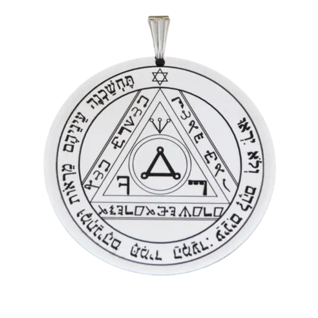 Simbologia: Il Sesto Pentacolo del Sole è descritto nella Clavicula Salomonis come un sigillo associato alla protezione della luce solare e alla capacità di ottenere favore, rispetto e successo sotto l’influenza benefica della coscienza divina. Collegato alla sfera del Sole, pianeta della volontà illuminata, dell’autorità e della vitalità spirituale, questo pentacolo incarna il principio della chiarezza interiore che dissipa oscurità, dubbio e influenze negative. Nella tradizione esoterica il Sole rappresenta il centro dell’essere e la manifestazione della luce divina nella coscienza, favorendo dignità, lucidità e capacità di guidare con equilibrio e saggezza. La forma circolare del talismano richiama il disco solare e l’ordi...