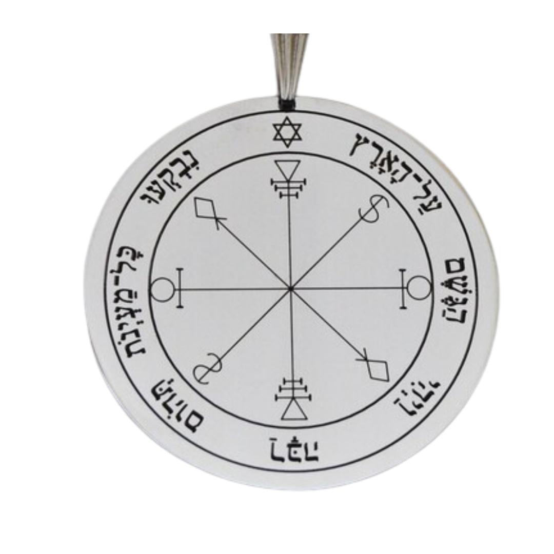 Simbologia: Il Sesto Pentacolo della Luna è descritto nella Clavicula Salomonis come un sigillo legato alla protezione contro illusioni, paure e influenze psichiche instabili, concepito per aiutare a dominare le correnti emotive e le immagini interiori che possono confondere la mente. Associato alla sfera lunare, pianeta dell’inconscio, dell’immaginazione e delle percezioni sottili, questo pentacolo incarna il principio della coscienza riflessiva che illumina le ombre interiori e rende consapevoli delle dinamiche invisibili che agiscono sull’anima. Nella tradizione esoterica la Luna rappresenta lo specchio della luce spirituale nella psiche, il luogo in cui emozioni, sogni e intuizioni si intrecciano formando il paesaggio interiore dell’individuo. La forma circolare del talismano richiama il ciclo lunare e la mutevolezza delle fasi emotive, suggerendo la capacità di attraversare cambiamenti e instabilità mantenendo equilibrio e lucidità. Le iscrizioni e i segni interni derivano da formule cabalistiche e invocazioni sacre concepite per attrarre l’influenza benefica della sfera lunare, stabilizzando emozioni, rafforzando intuizione e proteggendo da suggestioni e influenze sottili. In ambito esoterico questo sigillo simboleggia la padronanza della sensibilità interiore e la trasformazione dell’immaginazione in strumento di conoscenza e consapevolezza spirituale. Indossato come talismano, richiama protezione psichica, equilibrio emotivo e chiarezza intuitiva, sostenendo chi lo porta nel mantenere lucidità e serenità anche nelle fasi di cambiamento e introspezione profonda.