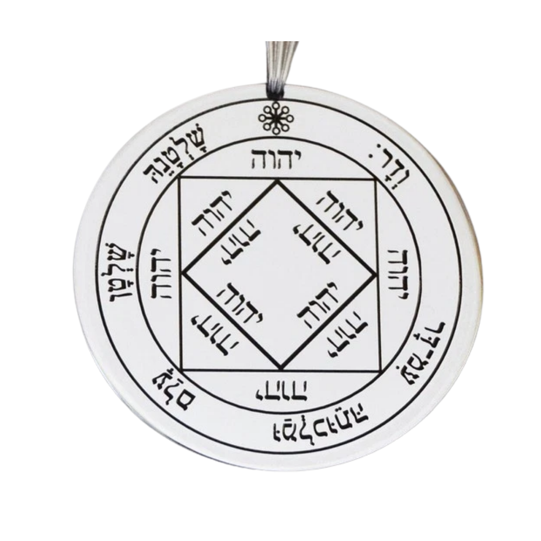 Simbologia: Il Terzo Pentacolo del Sole è descritto nella Clavicula Salomonis come un sigillo connesso alla protezione e al successo sotto l’influenza benefica della luce solare, utilizzato tradizionalmente per rafforzare prestigio, dignità e riconoscimento nelle azioni e nei progetti importanti. Associato alla sfera del Sole, pianeta della coscienza, della volontà e della regalità spirituale, questo pentacolo incarna il principio della luce interiore che illumina il cammino e rende manifeste le qualità più nobili dell’individuo. Nella tradizione esoterica il Sole rappresenta il centro dell’essere e la presenza della scintilla divina nella coscienza, favorendo chiarezza, sicurezza e capacità di guidare con autorità equilibrata e consapevole. La forma circolare del talismano richiama il disco solare e l’ordine perfetto dell’universo governato dalla luce, simbolo di unità, forza e manifestazione del potere creativo spirituale. Le iscrizioni e i segni interni derivano da formule cabalistiche e invocazioni sacre concepite per attrarre l’influenza benefica della sfera solare, rafforzando carisma, fiducia e protezione contro influenze che oscurano volontà e lucidità mentale. In ambito esoterico questo sigillo simboleggia l’irradiazione della coscienza e la protezione della luce contro forze che ostacolano realizzazione e affermazione, trasformando ambizione e desiderio di successo in manifestazione armonica e consapevole del proprio destino. Indossato come talismano, richiama vitalità, prestigio e protezione luminosa, sostenendo chi lo porta nel manifestare pienamente il proprio potenziale e nel ricevere riconoscimento per il proprio valore.