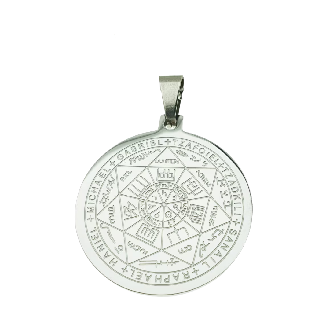 Queste intelligenze olimpiche rappresentano le forze archetipiche dei pianeti e le leggi sottili che regolano il movimento del cosmo e l’evoluzione dell’anima umana. Il sigillo racchiude simbolicamente l’armonia delle sette sfere planetarie, evocando l’equilibrio tra tempo e saggezza, espansione e giustizia, azione e volontà, luce e coscienza, amore e bellezza, intelletto e comunicazione, intuizione e immaginazione. Nella tradizione esoterica questo talismano è considerato una sintesi dei poteri planetari e un emblema dell’uomo come microcosmo riflesso del macrocosmo universale. Le incisioni simboliche derivano da formule ermetiche e cabalistiche concepite per armonizzare le correnti planetarie e favorire equilibrio tra volontà, emozione e intelletto. Indossato come talismano, richiama protezione globale, armonia energetica e allineamento con le leggi superiori del cosmo, sostenendo chi lo porta nel vivere con equilibrio, consapevolezza e integrazione tra tutte le dimensioni dell’essere.