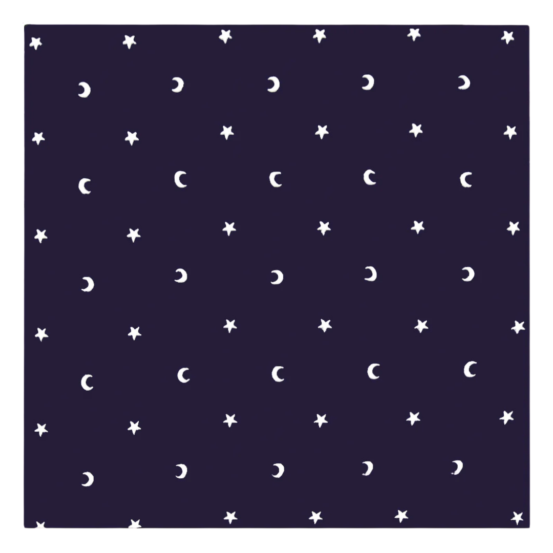 Simbologia: la luna crescente è associata ai cicli di rinnovamento, all’intuizione e alla dimensione inconscia, mentre le stelle rappresentano guida, destino e orientamento spirituale sin dall’antichità, quando venivano utilizzate per la navigazione e la misurazione del tempo. Insieme evocano il legame tra microcosmo e macrocosmo, tra il percorso individuale e l’ordine universale, rendendo questo tappetino un simbolo di ricerca interiore e ascolto delle forze sottili.