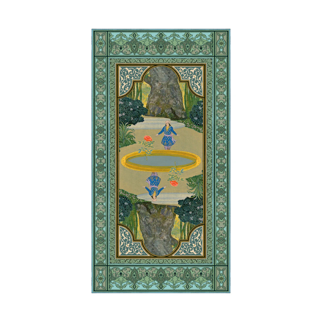 Immagini intrecciate di fiabe e di storie. Simboli che portano il profumo di terre lontane, di incenso e di spezie. Il respiro dell'Oriente si snoda tra gli arabeschi delle Mille e Una Notte, tra palazzi di pietre preziose, deserti e città incantate, tra principi e mendicanti. Notte dopo notte, carta dopo carta.
